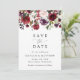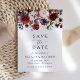 Invitations amis et famille dans le style et donner le ton pour votre journée spéciale avec ce charmant enregistrer la carte de date. Le design est composé de fleurs d'aquarelle bordeaux, rose et violet et de verdure sur l'arrière - plan blanc.