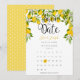 Cette élégante carte de rappel de date met en vedette un calendrier, de jolis citrons et une verdure en fleurs. Déplacez le citron pour marquer votre date spéciale. Le verso présente un motif chic à pois. Conçu par Thisisnotme© ***POUR DÉPLACER LE CITRON À VOTRE DATE SPÉCIALE, REGARDEZ À DROITE DE L'IMAGE DU PRODUIT OÙ IL EST ÉCRIT “PERSONNALISER LE MODÈLE”. SI VOUS CLIQUEZ SUR LE TEXTE BLEU “DÉTAILS”, VOUS VERREZ OÙ VOUS POUVEZ PERSONNALISER LE TEXTE. TOUT EN BAS, IL EST ÉCRIT “CLIQUEZ POUR PERSONNALISER DAVANTAGE”. CLIQUEZ DESSUS ET VOUS SEREZ EN MESURE DE DÉPLACER LE CITRON À LA DATE DE VOTRE