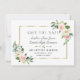 Design romantique et élégant avec des fleurs aquarelles roses, blush, crème, cadre doré unique, séparateur floral ; au dos bouquet floral sur fond bleu océan. Utilisez l'outil Personnaliser pour ajouter vos informations, faire des changements. Les articles assortis peuvent être trouvés dans ma collection Spring Blush Flowers.