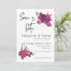 Ce design floral rose et audacieux comprend des fleurs magenta aux couleurs vives et du texte en écriture minimaliste. Romantique et tendance, ce mariage sauver la carte de date est un complément parfait pour une journée parfaite.