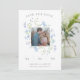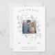 Un joli mariage floral sauvez le faire-part de date parfait pour votre prochain mariage du Printemps, avec votre photo de tournage fiançailles préférée dans un cadre carré de fleurs sauvages d'aquarelle bleu clair et feuilles verts. Personnalisez avec vos détails dans le code QR du site Web gris et mariage au verso.