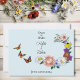 Un arrière - plan bleu clair avec des fleurs sauvages, des champignons, des marguerites blanches et des papillons monarques. Parfait pour les couples qui aiment le plein air et le charme rustique.