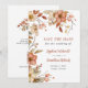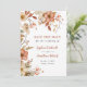 Code QR de Fleurs Sauvages Rustiques Faire-Part de Mariage... Un charmant bouquet de fleurs sauvages rustiques dans des tons de terre cuite, de vert sauge et de crème borde le texte de votre carte de Faire-Part de mariage de fin d'été ou d'automne. Le design affiche les détails de votre Faire-Part dans un script de calligraphie moderne ainsi que dans une typographie italique romantique. Au verso de la carte figure le code QR de votre site web de mariage pour que vos invités puissent suivre votre aventure et également consulter les informations importantes concernant votre mariage imminent. Le graphique du code QR et tout le texte peuvent être facilement modifiés sur le même modèle de personnalisation.