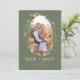 Green Boho Floral Économisez La Date. Ce faire-part élégant et élégant de mariage, à la date de péremption, présente de magnifiques fleurs sauvages d'aquarelle peints à la main, disposés comme une jolie couronne avec une photo fiançailles pour personnalisation. Le dos comprend un beau bouquet de coordination avec le monogramme de la mariée et du marié. Trouvez les objets correspondants dans la collection de Mariages Fleurs sauvages de saumons verts Sage.