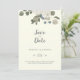Cette florale d'hiver sur mariage d'ivoire sauf la carte de date est parfait pour un mariage élégant. Le design simple présente des fleurs blanches, de la verdure hivernale et des feuilles d'eucalyptus, dans un style champêtre moderne.