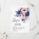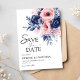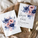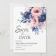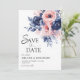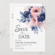 Save The Date Floral Navy Blue Blush rose Boho Elégant mariage