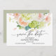Belle aquarelle d'hydrangées blanches et vertes avec des roses roses et crème, marguerites et petites fleurs et feuilles créent ces mariages enregistrer les cartes de date avec vos détails en lettres chic. CORRESPONDRE des articles dans notre magasin.