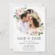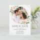 Save The Date Flore rose pâle Dusty Blue Gold Photo géométrique