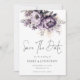 Moderne Lilac Florales violettes QR Code Mariage. Superbes fleurs et un élégant script set pour Save The Date. Le reste du texte que vous pouvez facilement personnaliser avec vos détails. Ajoutez votre code QR à votre site Web mariage au verso ou supprimez ceci et le texte au verso si cela n'est pas nécessaire.