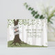 Un mariage à l'extérieur sauvez la date avec une illustration d'un arbre dans la forêt avec des feuilles verts et des racines exposées avec une bannière enroulée autour du tronc pour les noms du couple.