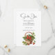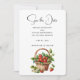 Enregistrez la carte de date avec une vibe d'été fraîche. Une jolie illustration avec des fraises fraîchement cueillies remplissant un pittoresque panier en osier.