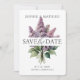Annoncez votre mariage avec un lilas français enregistrer la carte de date avec un design floral aquarelle classique. Parfait pour les mariages du printemps et de l'été, ce style simple et moderne rayonne d'une élégance intemporelle.
