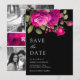 Save The Date Fuchsia Hot Pink Roses Photo Collage Black Wedding