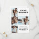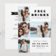 Un mariage moderne et drôle "BOISSONS GRATUITES ET UN MARIAGE SUR LE CÔTÉ" 4 photo collage enregistrer la carte de date pour craquer vos invités. Le design se compose d'une typographie moderne sur un arrière - plan blanc. Sur le côté arrière de la carte, la conception comporte du texte plus personnalisable.