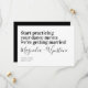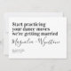 Faites savoir à vos amis et à votre famille que vous avez fixé un rendez-vous avec cette drôle de carte de datation - le texte dit : "Commencez à pratiquer vos mouvements de danse que nous nous marions".
