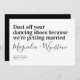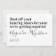 Faites savoir à vos amis et à votre famille que vous avez fixé un rendez-vous avec cette drôle de carte de dattes - le texte dit "Poussez vos chaussures de danse parce que nous nous marions".