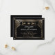 Variant sur l'un de nos modèles de papier à lettres Mariage les plus populaires, ce modèle d'annonce Save the Date présente un arrière - plan noir avec des graphiques complexes dorés beiges. Un double cadre rectangulaire en gris englobe le motif de style Gatsby Great Gatsby orné des années 1920.