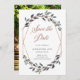 Ce mariage branché et élégant, à l'exception de la carte date, présente une forme géométrique en or faux rose entourée de magnifiques branches vertes, avec une typographie stylisée en or faux rose. Ajoutez votre photo personnelle préférée à l'arrière.