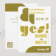 Joyeuse, créative, amusante, un peu funky et définitivement une déclaration, cette typographie géométrique moderne enregistrer la carte de date dit à tous vos amis et votre famille que vous avez dit "oui!" Cette version est composée d'un arrière - plan blanc aux accents d'avocat et d'vert d'olive et de moutarde. Les angles arrondis de la carte complètent les formes géométriques de la carte. Montré sur le carton blanc ordinaire, mais l'option papier blanc Felt ajoutera à la vibe rétro. Avant : Un esperluette géométrique, des noms de couple, la date, "oui !" dans une police géométrique cool, "Enregistrer la date", et la ville et l'état. Retour : arrière - plan blanc avec coordonnées géométriques, espace pour un message supplémentaire et code QR pour votre site mariage. Une partie de notre collection Bushwick avec notre thème de couleur ginkgo. Coordonner les invitations et les accessoires d'envoi disponibles.