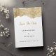 Un mariage élégant de luxe glam blanc, or et argent parties scintillant de luxe Save the Date invitation est le design parfait pour compléter un événement élégant et sophistiqué. Il présente de l'or brillant et de l'argent avec de l'or simple et élégant et de la typographie noire sur un arrière - plan blanc. Ce design traditionnel, unique et élégant impressionne tous vos invités. Tous les dessins sont imprimés.