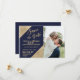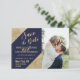 Elégant, chic, et glamour faux imprimé parties scintillant doré coins et écriture or sur un arrière - plan bleu marine, carte de mariage Save-the-Date. Ce design classique et sophistiqué est parfait pour le couple marié branché et élégant. Personnalisez avec votre propre message et votre photo sur le devant ainsi qu'une monographie customisée initiale sur le dos. Toute la conception d'impression photo.