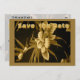 Que vous soyez une mariée qui planifie un mariage de destination à Hawaï ou dans les Caraïbes ou que vous souhaitiez simplement une empreinte vintage tropicale hawaïenne, cette carte postale de date offre un design romantique en or, bronze et couleurs bronzées pour votre occasion spéciale.