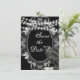 Ornate Silver Frame, Crow et String lumières sur un Arrière - plan noir gothique Enregistrer la date Annonces Mariages ^