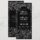 Ces faire-part de mariage "save the date" noirs et blancs, victoriens gothiques et élancés, sont parfaits pour les mariages d'Halloween, avec un cadre orné et tourbillonnant de style ancien, craquelé par l'âge, recouvert de toiles d'araignées effrayantes, sur un fond noir texturé et sombre avec des éclairs crépitants. Le texte est une combinaison d'écriture grunge, de lettrage classique en bloc facile à lire et de caractères de style médiéval en vieil anglais. Personnalisez le verso avec des informations supplémentaires pour vos invités, ou supprimez ces champs pour laisser le verso vierge.
