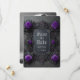 Annoncez vos plans mariages en style avec ce thème gothique enregistrer la carte à plat date avec roses violets sur un cadre gris chic et vos noms, date mariage et photo au dos pour personnaliser. Conçu par Susan Coffey. Images générées avec AI.
