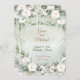 Annoncez votre journée spéciale avec notre Graceful Greenery Wedding Save the Date card. Ce design exquis présente un magnifique mélange de fleurs blanches de rose et de verdure fraîche d'eucalyptus, créant un aperçu enchanteur de votre célébration à venir. Les gracieuses roses blanches d'aquarelle et les branches d'eucalyptus encadrent délicatement l'inscription centrale avec votre nom, en complément parfait du style boho de votre thème mariage. Idéal pour les épouses qui recherchent l'élégance, cette carte de dattes permet d'améliorer sans effort un jeu de couleurs vert, blanc et or, ajoutant une touche de sophistication à votre décor mariage. Personnalisez ce design charmant pour le rendre unique et laissez vos invités anticiper votre journée inoubliable. Avec son art floral captivant et son style élégant, notre Graceful Greenery Wedding Save the Date card est la façon parfaite de donner le ton pour votre occasion spéciale.