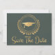 J'aime concevoir des oeuvres d'art pour les diplômes. C'est moderne simple et élégant classique or et couleur verte Enregistrer la carte d'annonce de la date. Texte de style moderne. Ajoutez votre propre message au verso des cartes donnant des détails à votre famille et vos amis pour enregistrer la date pour une cérémonie de remise de diplômes, un événement, une fête ou une autre occasion.