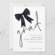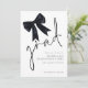 Moderne Black Bow Script Grad Graduation Enregistrer la date. Disponible numériquement et imprimé. Cette conception a un ensemble informel de script de style d'écriture manuscrite pour l'en-tête principal, grad, et facile à personnaliser typographie en bas à droite avec vos détails. Avec une illustration coquette à aquarelle stylisée.