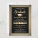 Si des circonstances inattendues ont causé un report ou l'annulation de votre fête de remise de diplômes, informer la famille et les amis du changement de plans avec élégante feuille noire et fausse or enregistrer les nouvelles invitations de date. Tout le texte est simple à customiser. Le design comprend une bordure rayée moderne et élégant nom de diplômé en typographie, année de classe et école. Veuillez noter que l'or est imprimé en couleur foncée, pas en feuille métallique. Cette carte de faire-part élégante est une façon élégante et chic de commencer votre célébration de la journée spéciale et de les invitation pour réenregistrer la nouvelle date reprogrammée. Félicitations au diplômé !