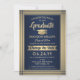 Si des circonstances inattendues ont causé un report ou l'annulation de votre fête de remise de diplômes, informer la famille et les amis du changement de plans avec élégante feuille bleu marine et faux or enregistrer les nouvelles invitations de date. Tout le texte est simple à customiser. Le design comprend une bordure rayée moderne et élégant nom de diplômé en typographie, année de classe et école. Veuillez noter que l'or est imprimé en couleur foncée, pas en feuille métallique. Cette carte de faire-part élégante est une façon élégante et chic de commencer votre célébration de la journée spéciale et de les invitation pour réenregistrer la nouvelle date reprogrammée. Félicitations au diplômé !