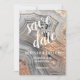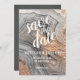 Moderne enregistrez la carte de date avec un design gris / cristal, géode / agate avec des accents de feuille d'or rose. Personnalisé avec les détails de votre événement. Agate gris.