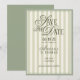 Save The Date Green Ivory Striped Old Money Calligraphy Wedding