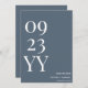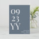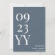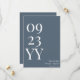 Annoncez votre mariage dans le style avec le Big Bold Date Dusty Blue Enregistrer la date. Doté d'un arrière - plan bleu poussiéreux et serein, avec des lettres et des chiffres blancs, ce design minimaliste affiche en évidence votre date de mariage aux côtés des noms du marié et de la mariée. Parfait pour les mariages modernes, élégants ou romantiques, cette carte de sauvegarde allie simplicité et sophistication, assurant à vos invités de marquer leur calendrier pour votre grand jour.