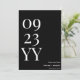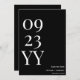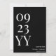 Faites une déclaration en gras avec notre Big Bold Black and White Date Save the Date. Ce design accrocheur présente un grand écran impeccable de votre date de mariage dans un jeu saisissant de couleurs noir et blanc. La simplicité et le contraste du design créent un look moderne et sophistiqué qui séduira sûrement vos invités. L'impression de haute qualité assure des détails clairs et nets, faisant de la date le point central de la carte. Avec des options personnalisables pour vos noms et des détails supplémentaires, cette sauvegarde de la carte de date vous permet d'ajouter une touche personnalisée à vos annonces de mariage. Donnez le ton pour votre grande journée avec notre Big Bold Black and White Date Save the Date, en faisant une impression durable et en bâtissant l'anticipation parmi vos proches. Préparez-vous à embarquer dans votre voyage mariage avec style et élégance. Une partie de la collection de Mariages noirs et blancs.