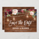 Aquarelle rouge bordeaux marine rose poudré design floral rustique campagne chic et élégant avec guirlandes lumineuses et pots Mason modèle de carte "Save the date" avec feuillage botanique vert et feuilles d'eucalyptus sur fond en bois. Ce beau design facile à personnaliser peut correspondre facilement à vos couleurs, styles et thème de mariage et est un choix parfait pour les mariages de campagne en automne, au milieu de l'été ou en hiver. Vous pouvez trouver plus de modèles assortis dans ma boutique ou me contacter si vous avez besoin d'aide pour la personnalisation du design.