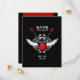 Annoncez votre mariage avec cette carte Enregistrez la Date non conventionnelle dans le style rock and roll avec des guitares électriques rouges croisées, des ailes et des ornements vintage sur fond noir.