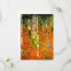 Carte représentant la peinture de Gustav Klimt Farmhouse with Birch Trees (1903). Un paysage automnal de feuilles oranges dans une forêt de bouleaux aux belles fleurs bleues. Un cadeau merveilleux pour les amateurs d'Art Nouveau et d'Art autrichien.