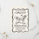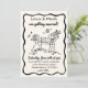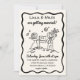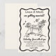 We are over the moon wedding invitation, whimsical hand drawn illustrations showing a bride and groom setting a flag to their future.