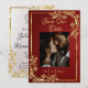 This romantic Save the Date Card features a placeholder for a photo on a romantic ruby red background on the front with an elegant gold frame. The back has room for additional information and heart monogram for couple's initials. Designed to coordinate with the "Doves, Heart & Gold Leaves" Wedding Collection. To change details, click «Personalize». To move the text or change the text size, font, or color click «Click to customize further»