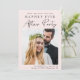 Élégant rose pâle Sauvegardez la Date pour votre réception ou fête de mariage après l'évènement ou petit mariage. Le recto présente votre photo mariage et "Save The Date For Our Happily Ever After Party" écrites dans un mélange de typographie simple et d'un script moderne chic. Ajoutez vos prénoms et votre date de mariage. Au contraire, personnalisez votre enregistrement du message de date de manière plus détaillée et ajoutez vos noms dans un script de type signature.