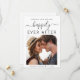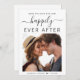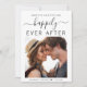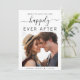 Moderne enregistrer le faire-part mariage date. Le devant présente votre photo, "Save The Date For Our Happily Ever After" dans un mélange de typographie simple et de script tendance avec des swashes et vos prénoms et date mariage. Au contraire, personnalisez votre message plus en détail et ajoutez vos noms dans un script de type signature.