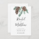 Parfait pour les mariages d'hiver, cette date de sauvegarde présente des pinecones d'aquarelle peintes à la main et des feuilles de pin, avec grand script moderne et vos détails ci-dessous.