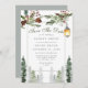 Hivernal Pins Rustiques Lanterne Enregistrer La Carte Date. Beau mariage d'hiver élégant sauver les invitations à la date avec lanterne enneigée avec branches de pin botanique rustique et pins. Ce design mariage moderne et personnalisé peut être facilement personnalisé avec vos propres détails de mariage.