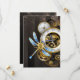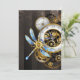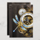 Cadran d'antiquités avec or et lances en laiton, décoré de libellules mécaniques sur arrière - plan brun rayé. Steampunk.