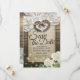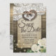 Style rustique Country Style Mariage moderne Enregistrer la date Invitation Card Modèles - Couple Old Horseshoe Coeur avec corde Bow Knot et dentelle blanche, Hydrangea Flower, String Lights et Burlap Cloth sur l'ancien Arrière - plan en bois de grange. Un design parfait pour votre grand jour. Tous les styles de texte, couleurs, tailles peuvent être modifiés selon vos besoins !