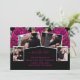 Magnifique Enregistrer la carte Date avec roses roses chauds touchés par du papier doré. Jolie typographie de script. L'arrière - plan noir donne en fait une carte étonnante qui se démarque vraiment. Personnalisez avec quatre de vos photos spéciales. Petit graphique rose de coordination sur le dos.